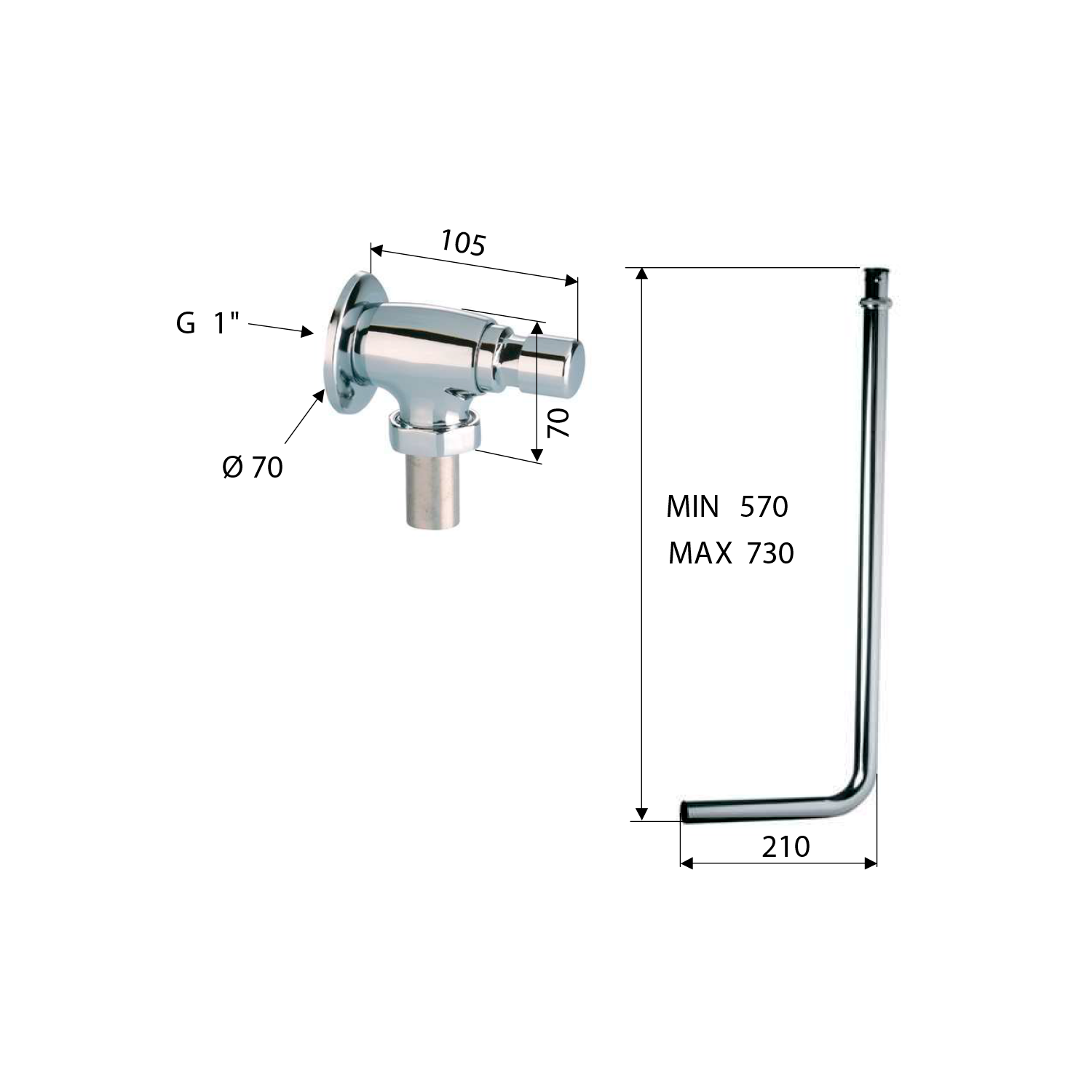 TEMPOR samouzavírací nástěnný WC ventil, chrom