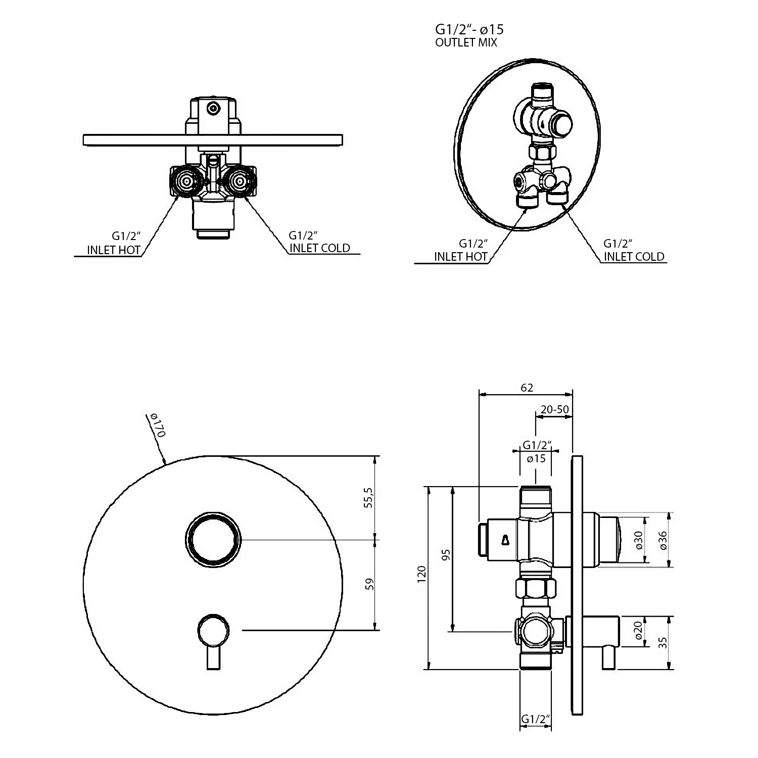 TEMPOR samouzavírací podomítkový sprchový ventil s regulací teploty, chrom