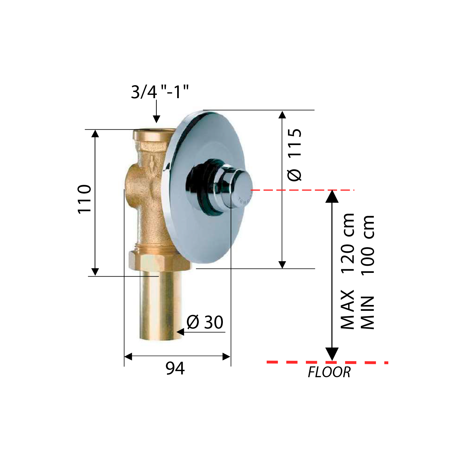 TEMPOR samouzavírací podomítkový WC ventil, chrom