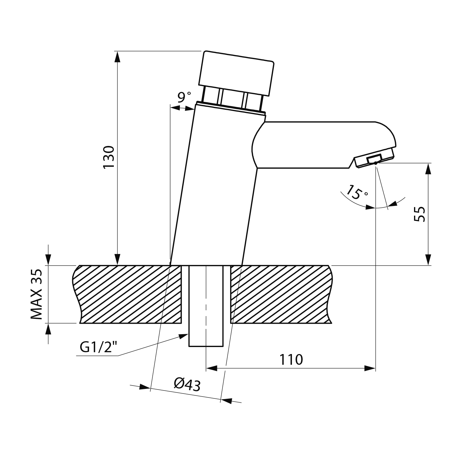 TEMPOR samouzavírací stojánkový ventil na umyvadlo, chrom