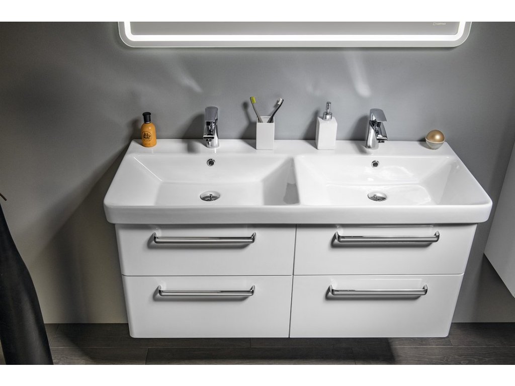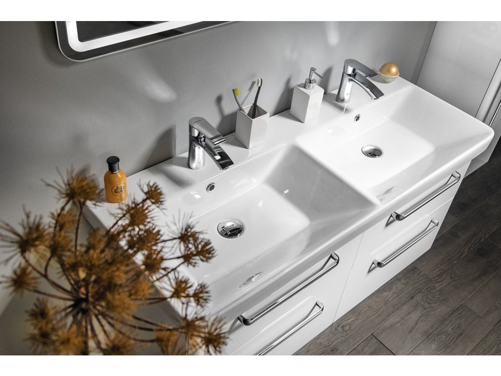Moderní linie skříněk řady THEIA ladí s keramickými umyvadly THALIE vytváří spolu zajímavý celek. Skříňky a zásuvky jsou opatřeny elegantní úchytkou. Zásuvky jsou vybaveny značkovými pojezdy BLUM® s doživotní zárukou, dvířka jsou vybavena panty s tlumeným dovřením. Na výběr je zásuvkové nebo dvířkové provedení umyvadlových skříněk v lesklé bílé a ve vybraných dekorech lamina.