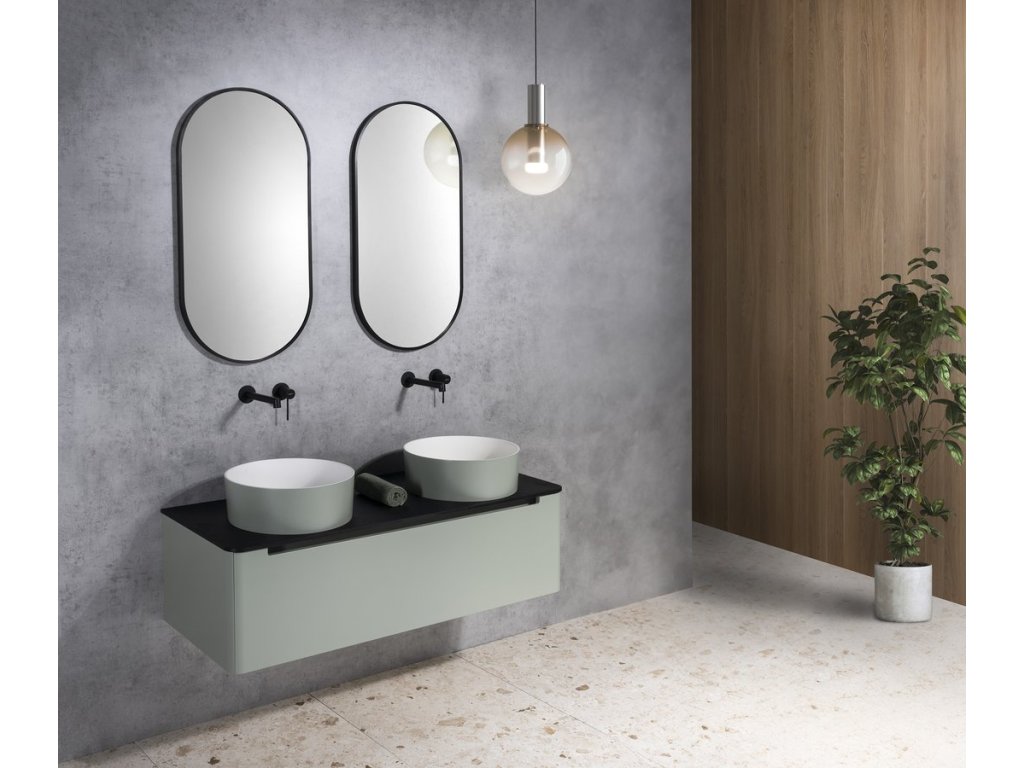 THIN umyvadlo na desku, Rockstone, Ø 38 cm, verde/bílá mat