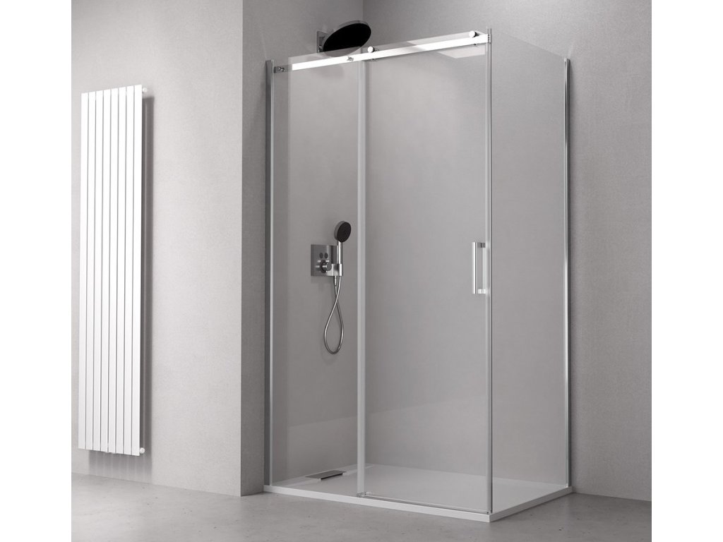 - Dveře jsou děleny na část posuvnou a pevnou - umožňují variabilní instalaci s levým nebo pravým otevíráním