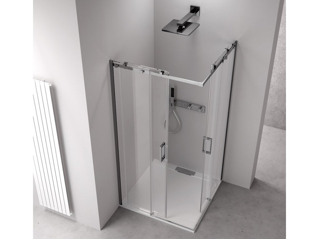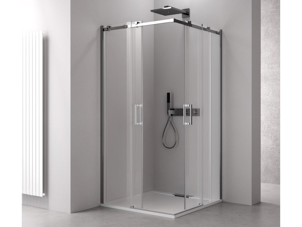 THRON SQUARE čtvercový sprchový kout 1100x1100mm, hranaté pojezdy, rohový vstup
