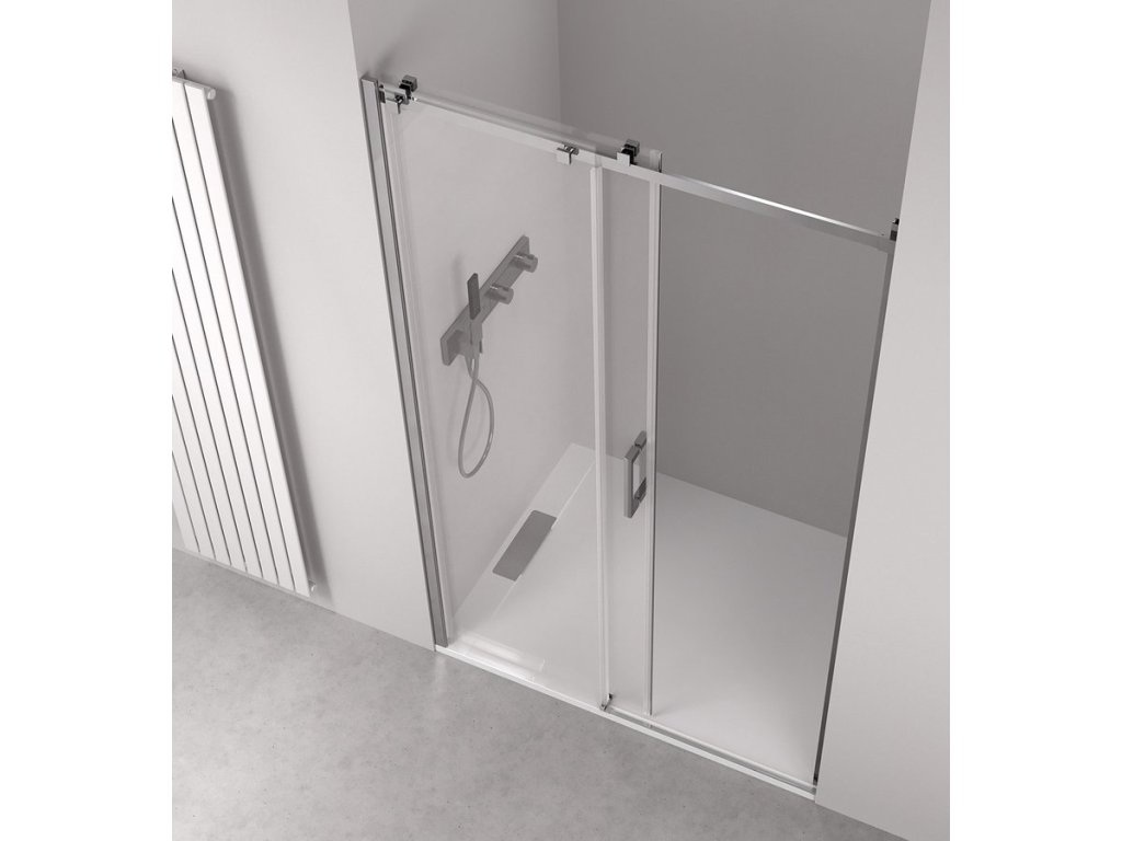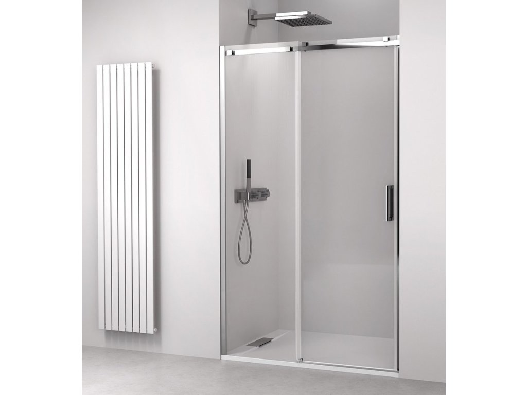- Dveře jsou děleny na část posuvnou a pevnou - umožňují variabilní instalaci s levým nebo pravým otevíráním