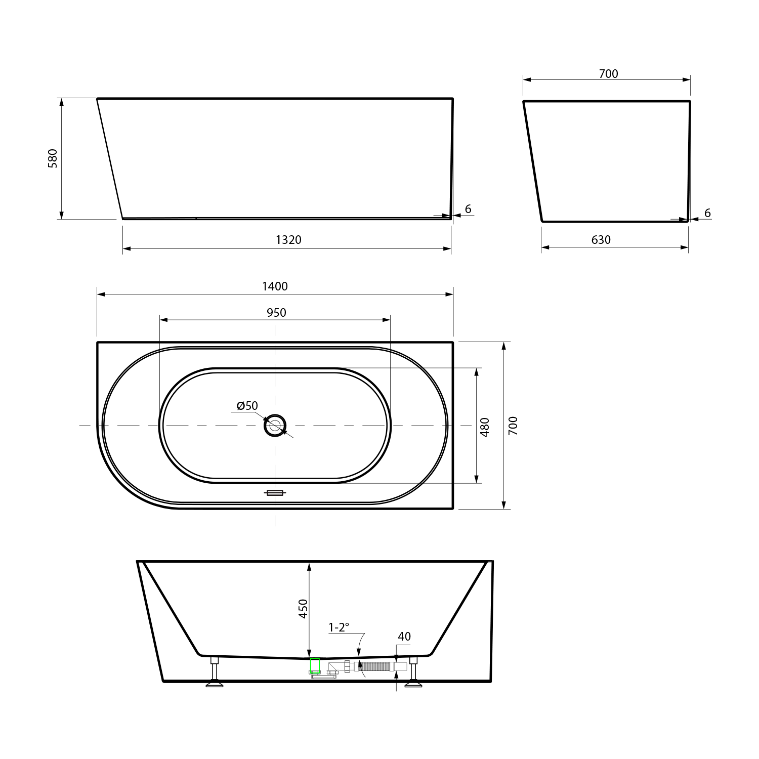 Samostatně stojící vana TIBERA se neobezdívá ani neobkládá. Svým designem je určena k instalaci do rohu, čímž se stává zajímavou variantou náhrady za klasickou rohovou vanu. Pohledová je i zadní strana, takže elegantně bude působit i v prostoru. Za pozornost stojí řešení přepadu ve tvaru obdélníkové štěrbiny s nerezovou krytkou.