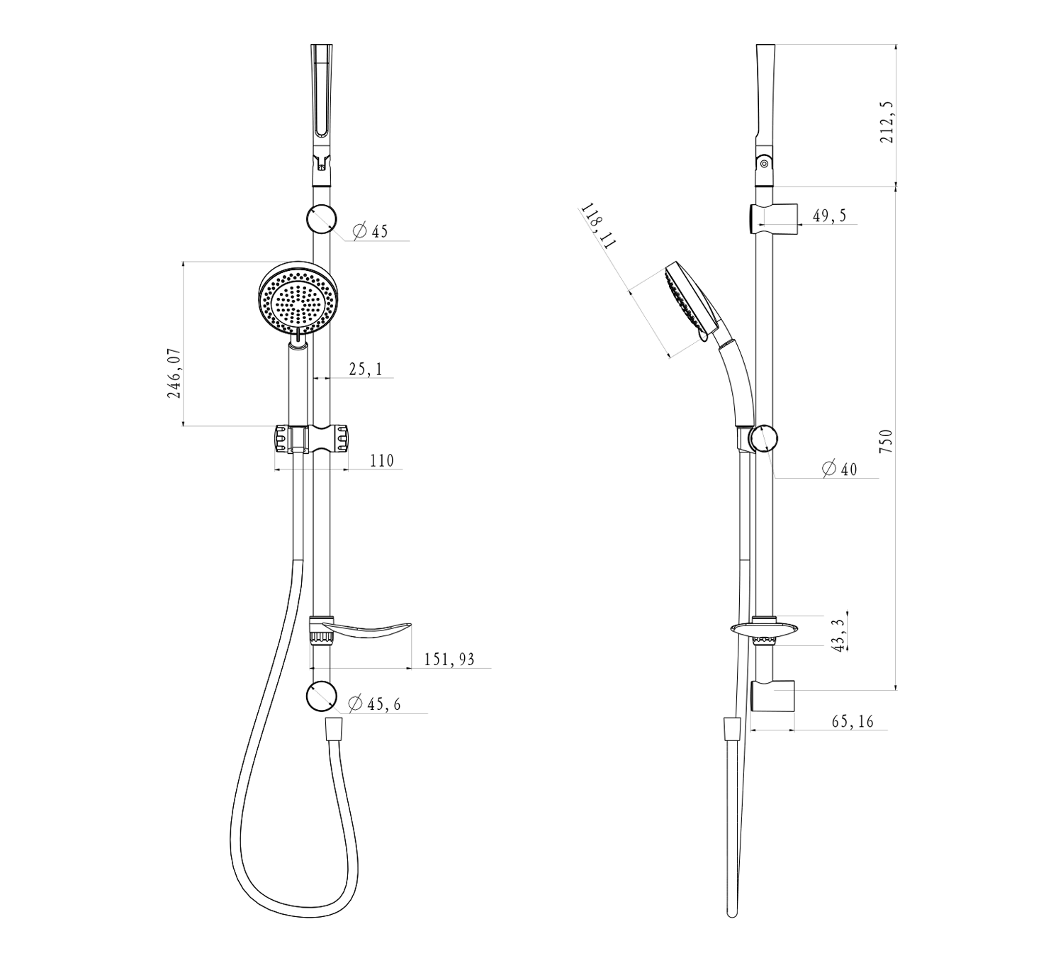 TILA sprchová souprava s mýdlenkou, posuvný držák, hadice 1500mm, chrom