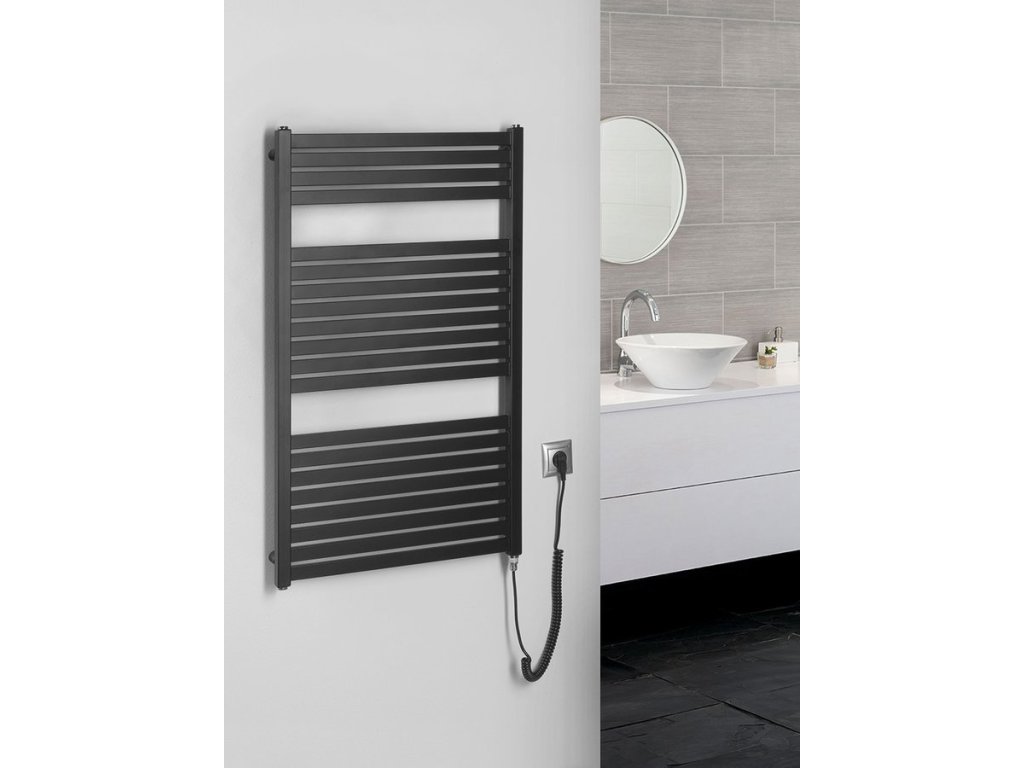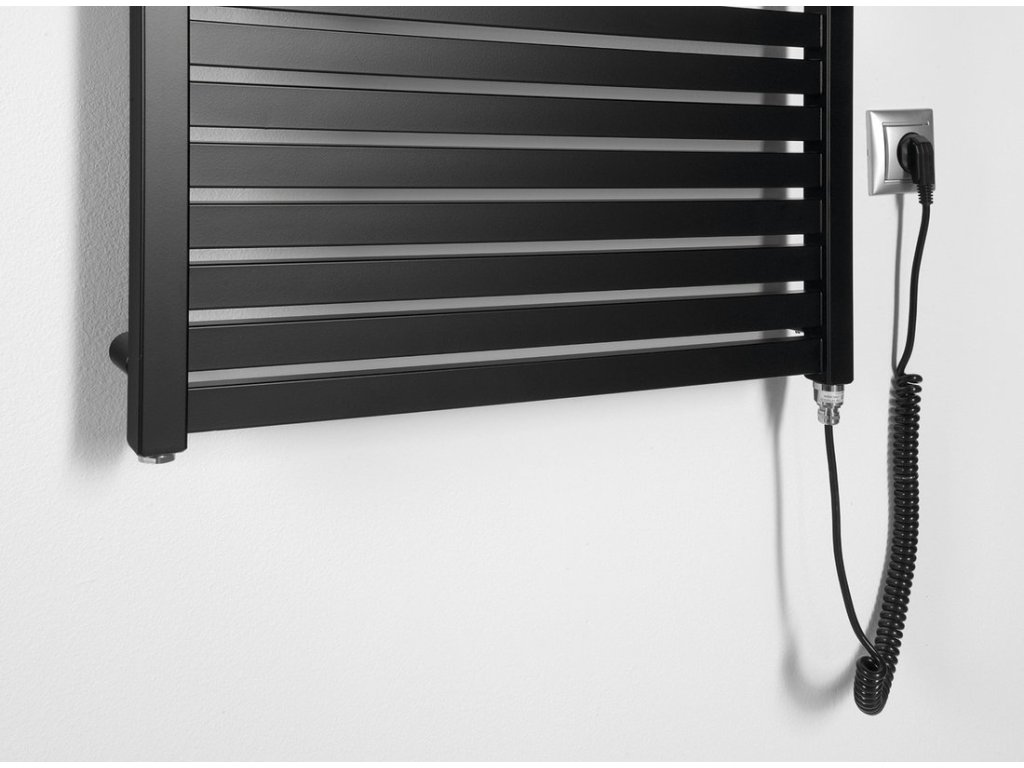 Elektrická otopná tělesa s čtyřhrannými trubkami. Elektrická topení jsou vhodná k umístění do koupelen, chodeb nebo WC. Jsou opatřena elektrickou topnou tyčí s kabelem a vidlicí do zásuvky.