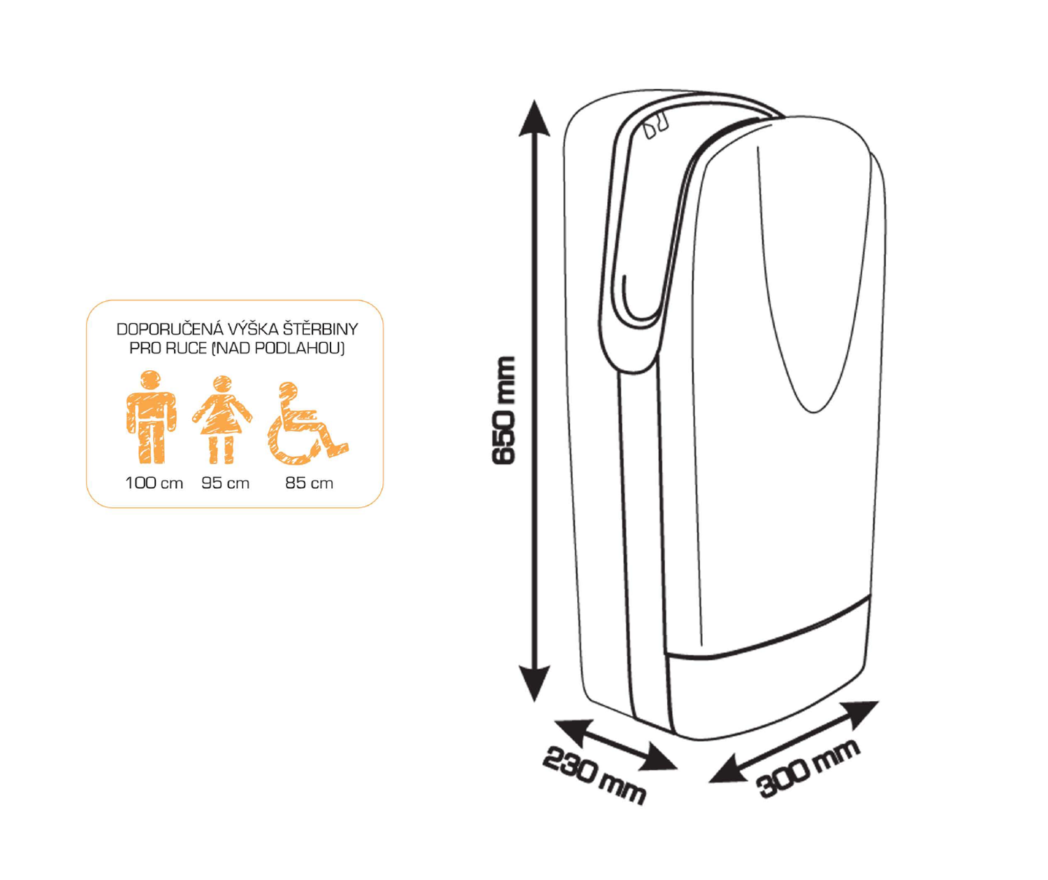 TORNADO JET bezdotykový tryskový osoušeč rukou 220-240 V, 1750 W, 300x650x230 mm, stříbrná mat