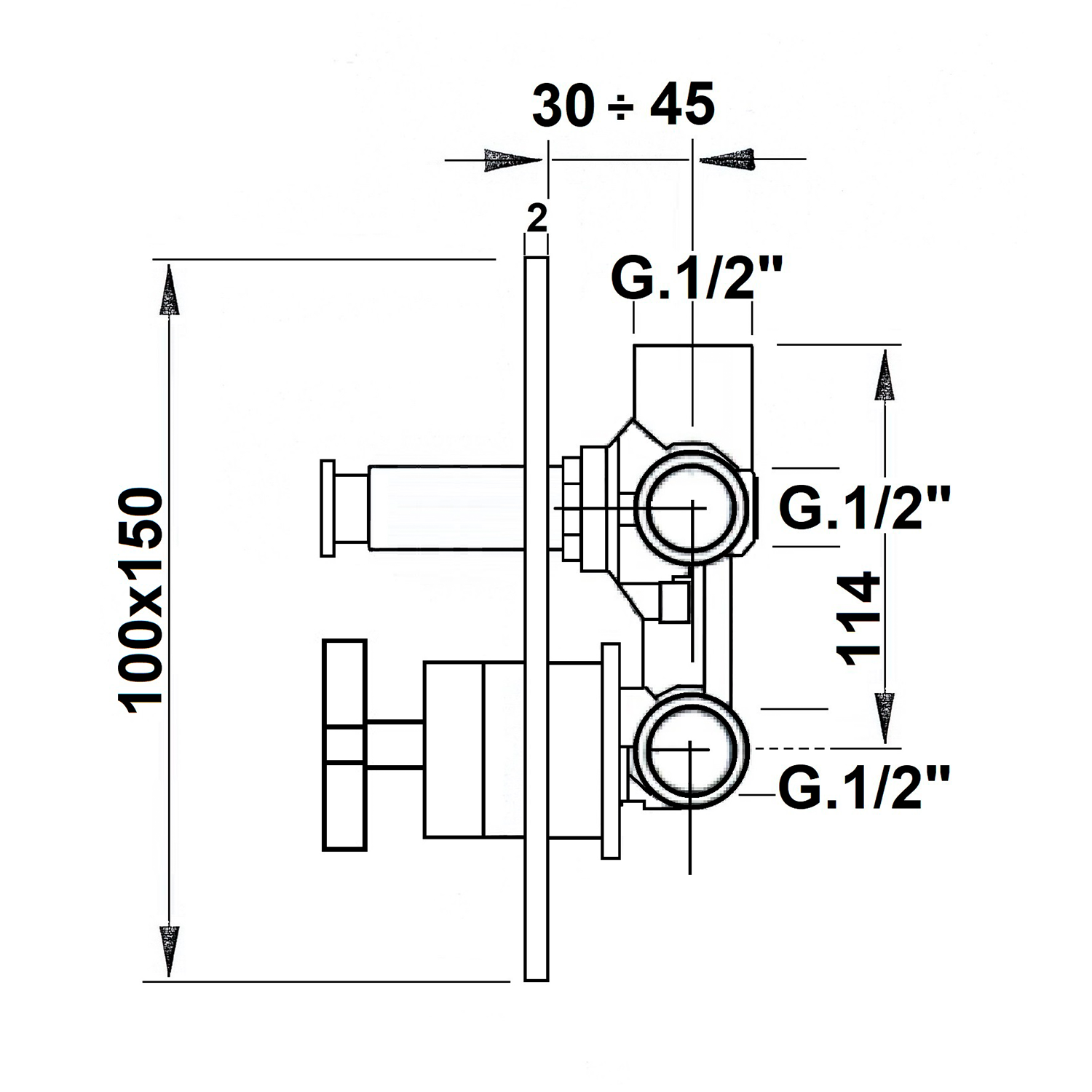 TRAX podomítková sprchová baterie, 2 výstupy, chrom