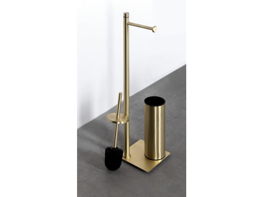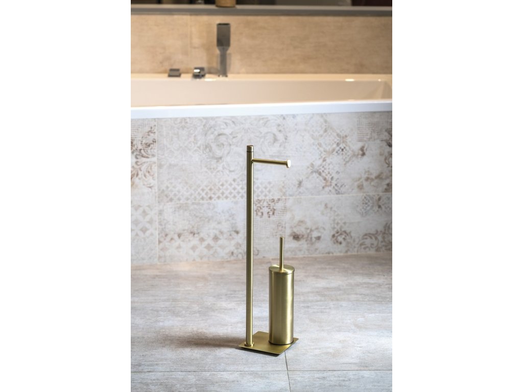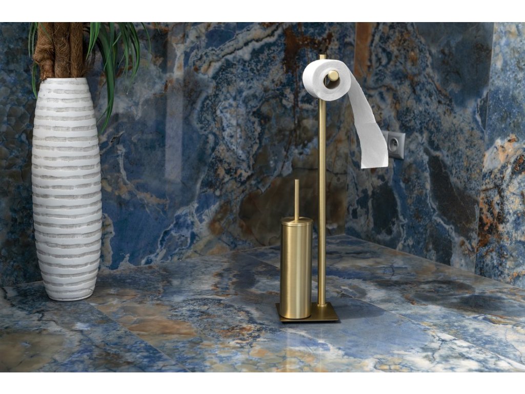 TRILLY stojan s držákem na toaletní papír a WC štětkou, hranatý, zlato mat