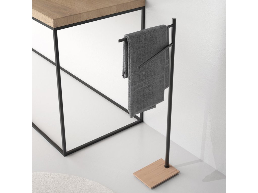 TRILLY stojan s držákem ručníků, hranatý, černá mat/bambus