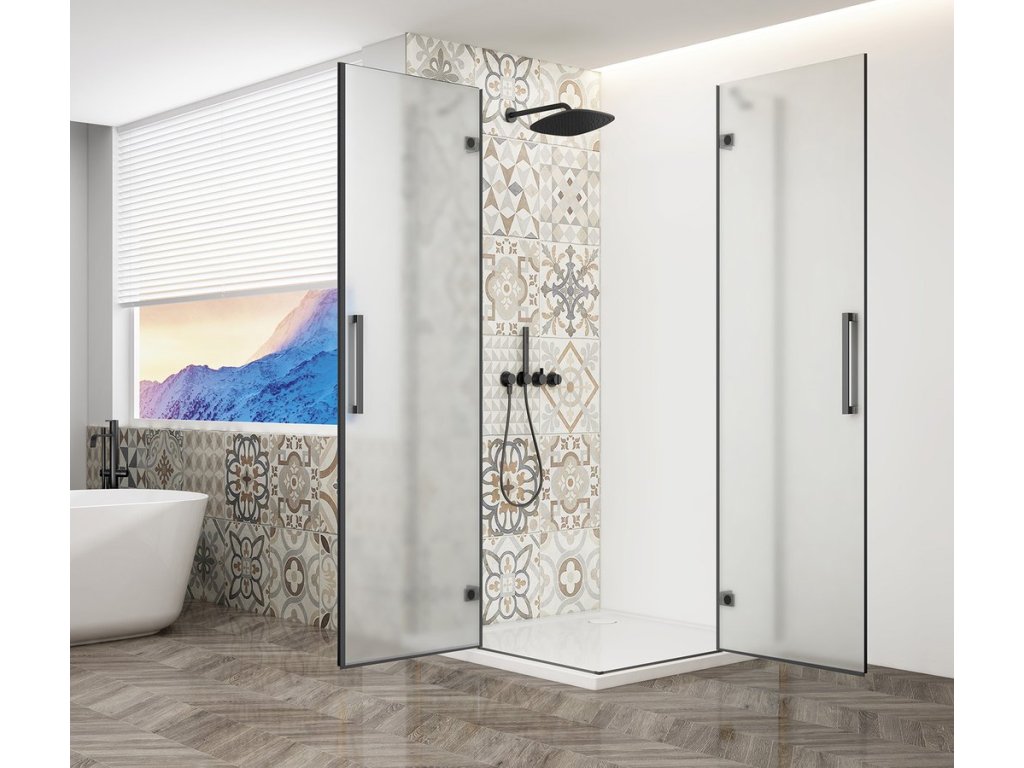 TRINITY BLACK obdélníkový sprchový kout 1100x800mm, rohový vstup, matné sklo