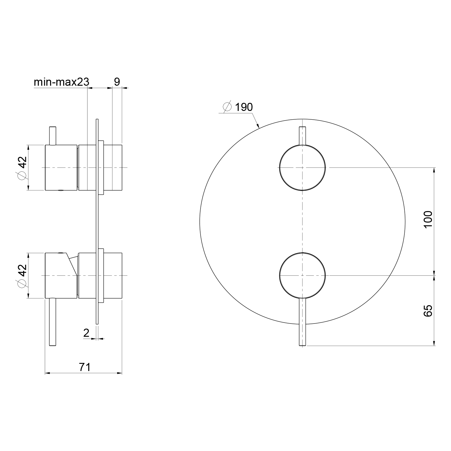 ULTRAMIX podomítková sprchová baterie, 2 výstupy, otočný přepínač, černá mat/chrom
