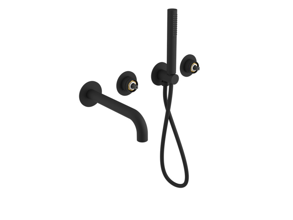 ULTRAMIX tělo podomítkové vanové baterie s hubicí a ruční sprchou, 2 výstupy, černá mat
