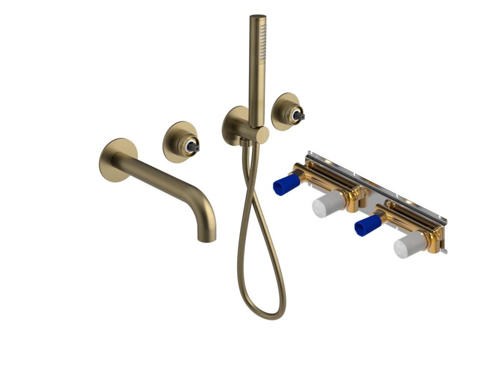 ULTRAMIX tělo podomítkové vanové baterie s hubicí a ruční sprchou, 2 výstupy, zlato mat