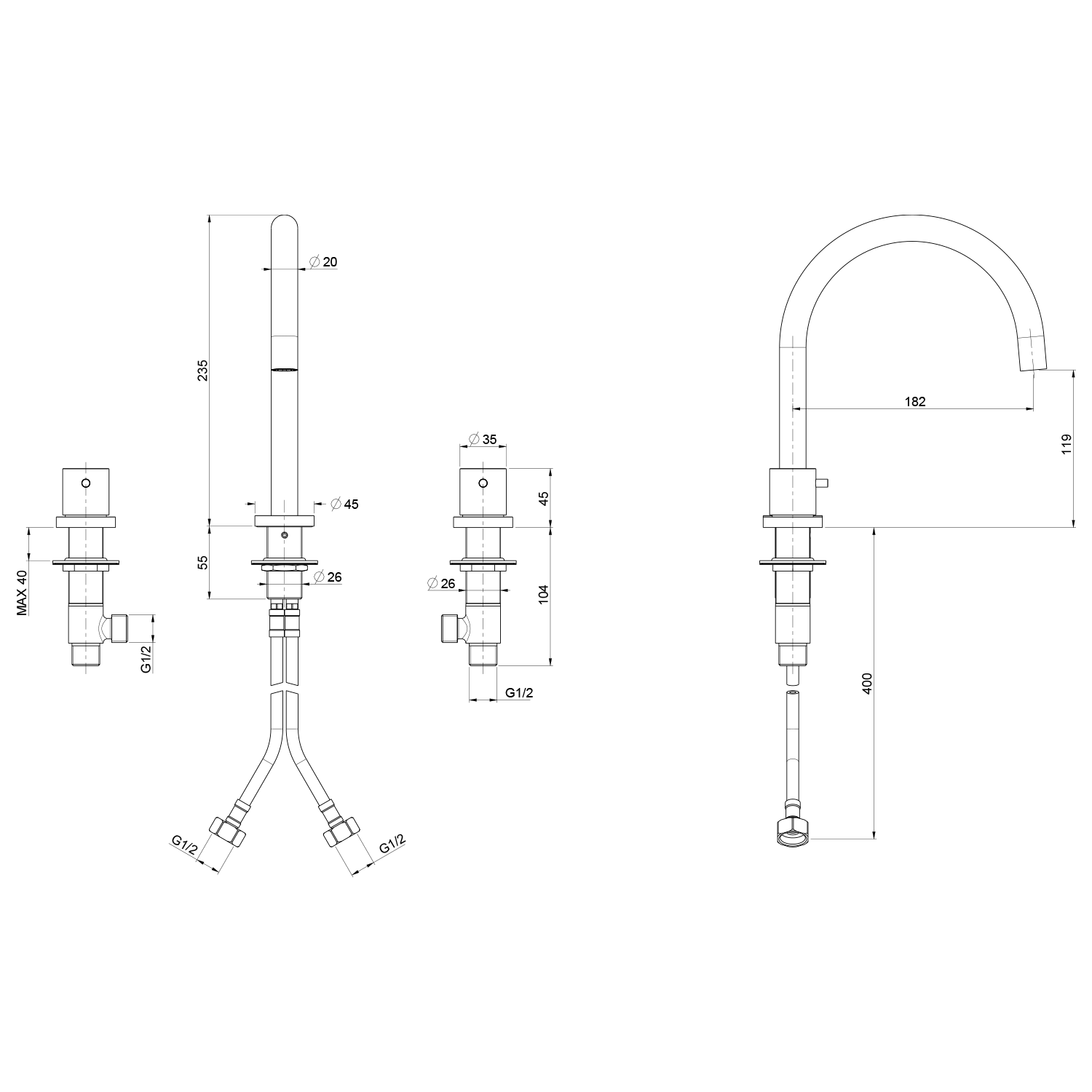ULTRAMIX tříprvková stojánková umyvadlová baterie, chrom