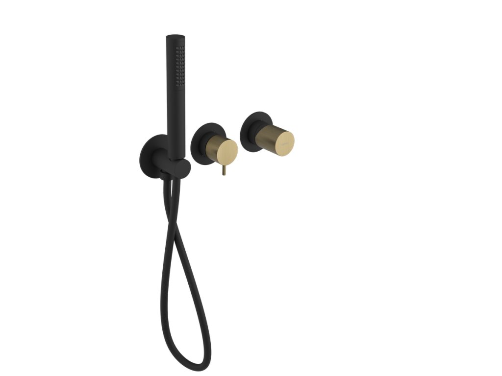 ULTRATAP podomítková sprchová/vanová baterie s ruční sprchou, 2 výstupy, černá mat/zlato mat