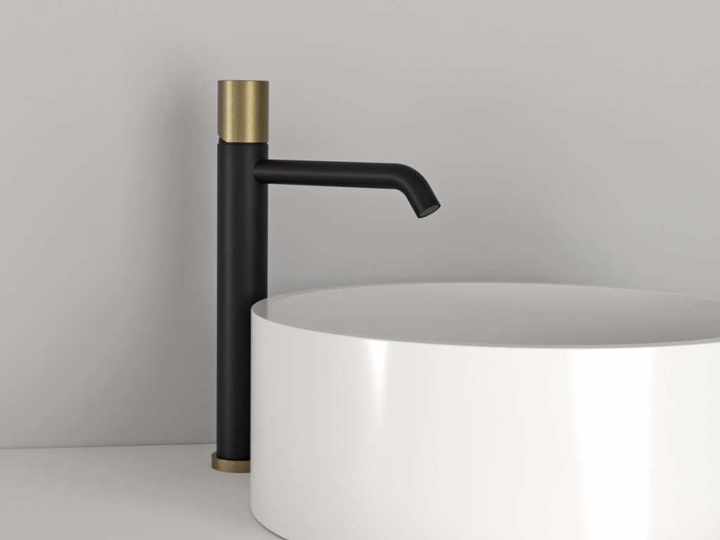 ULTRATAP stojánková umyvadlová baterie vysoká, prodloužená hubice, černá mat/zlato mat