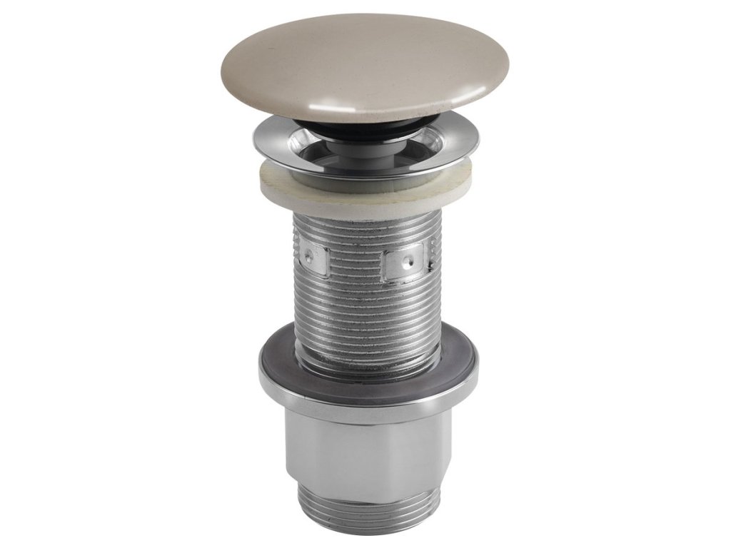 Umyvadlová výpust 5/4“, click-clack, betonová zátka, 10-80mm, písková pololesk