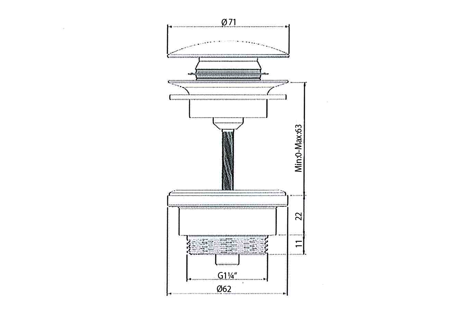 Umyvadlová výpust 5/4“, click-clack, keramická zátka, 5-63mm, bílá