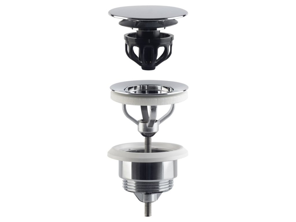 Umyvadlová výpust 5/4“, click-clack, velká zátka, 10-45mm, chrom