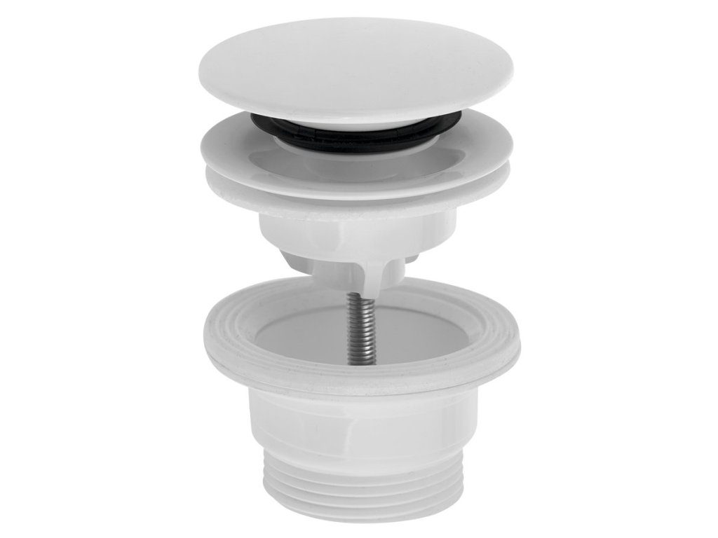Umyvadlová výpust 5/4“, click-clack, velká zátka, 4-45mm, ABS/bílá