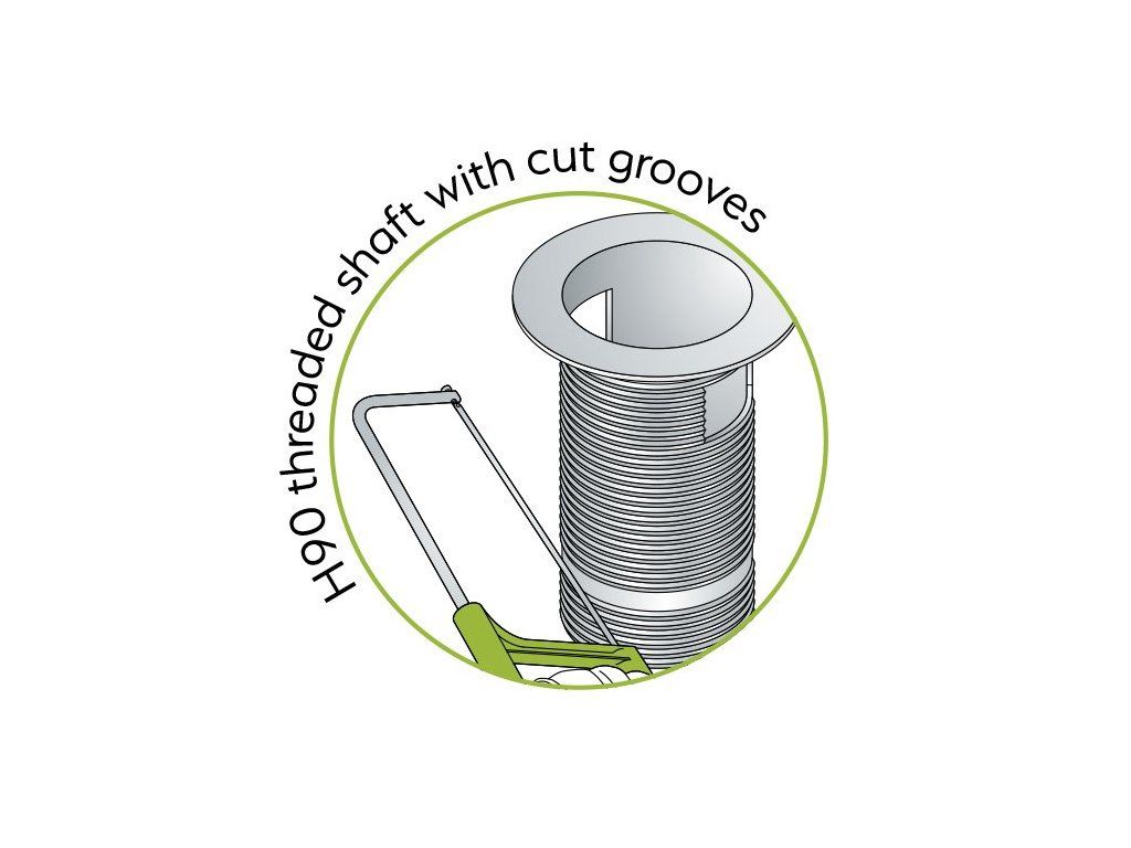 - Výpust může být použita pro všechny tloušťky umyvadel, neboť ji lze jednoduše zkrátit pilkou na požadovanou délku.