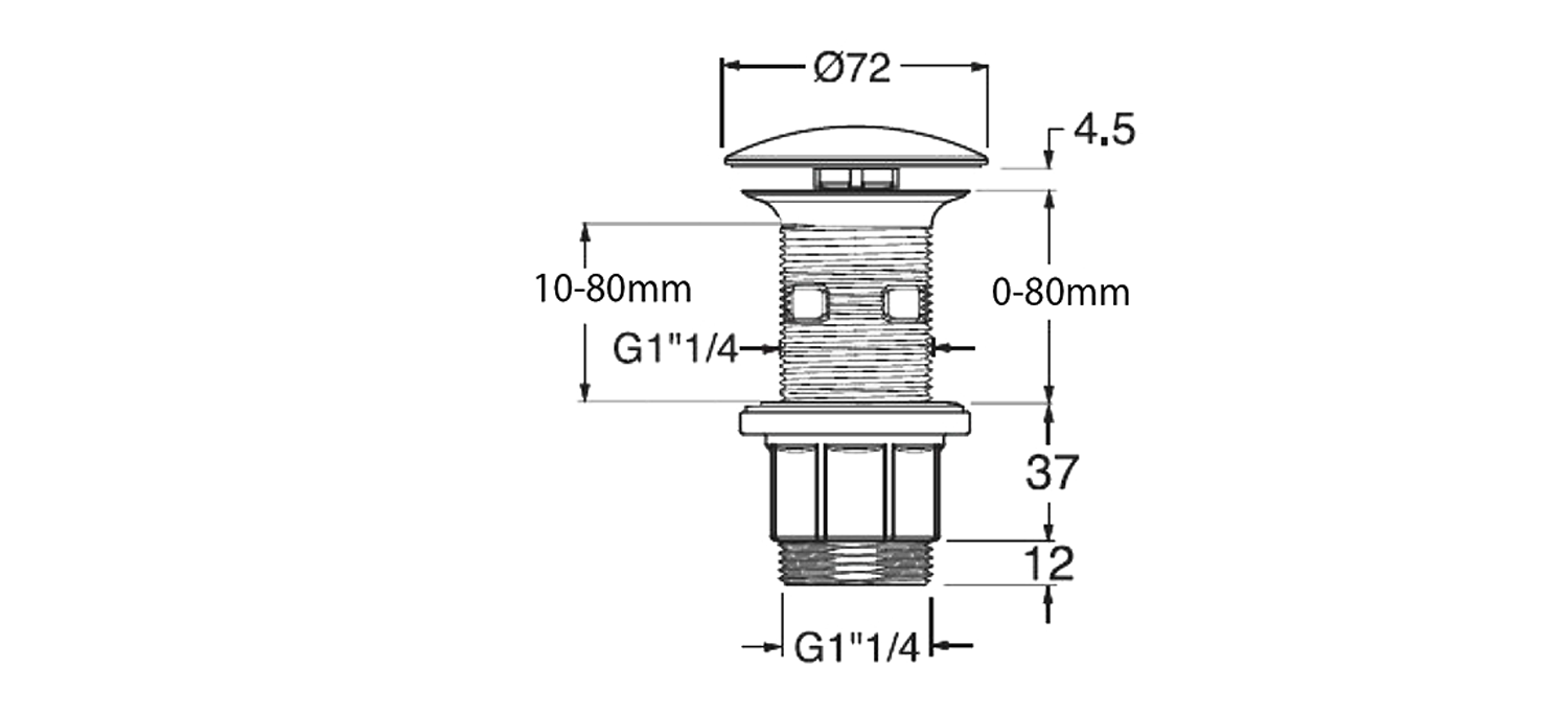 Umyvadlová výpust 5/4“, neuzavíratelná, velká zátka, 10-80mm, chrom