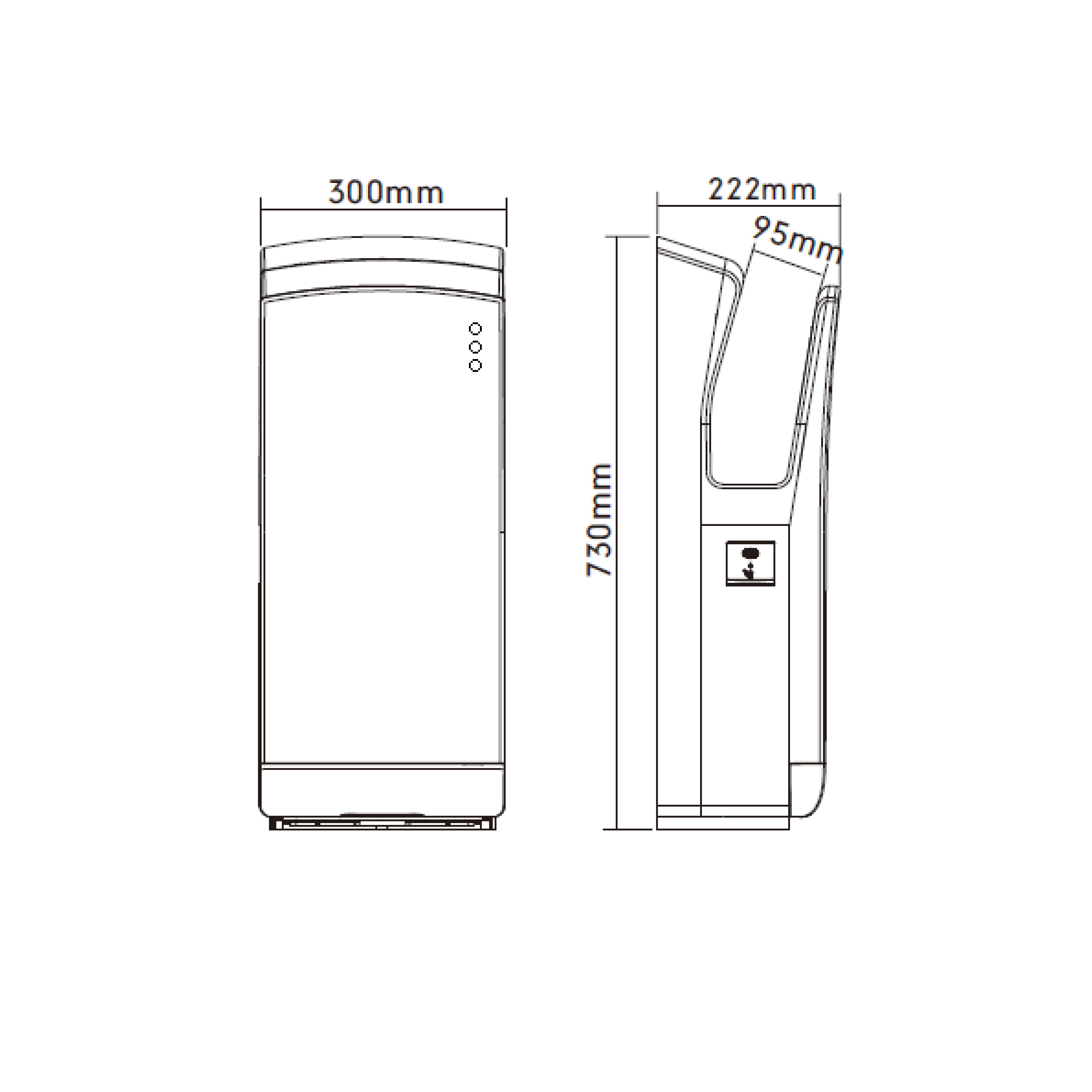 V-JET INOX bezdotykový tryskový osoušeč rukou 220-240V, 1650W, 300x730x222mm, nerez mat