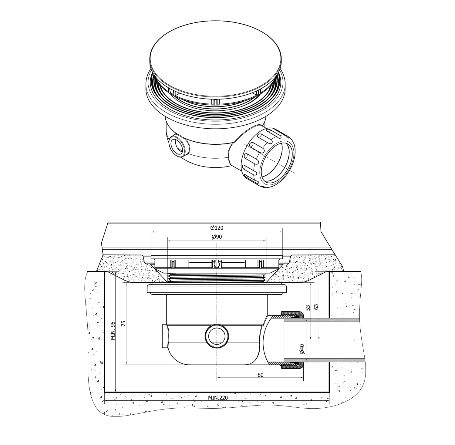 Vaničkový sifon, průměr 90mm, DN40, krytka bílá