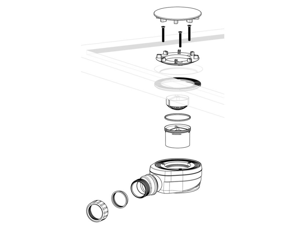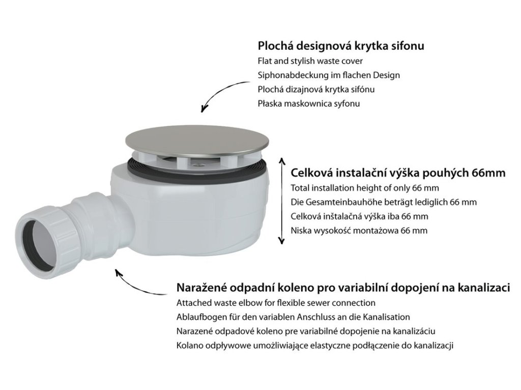 Vaničkový sifon, průměr 90mm, DN40, nízký, krytka nerez lesk