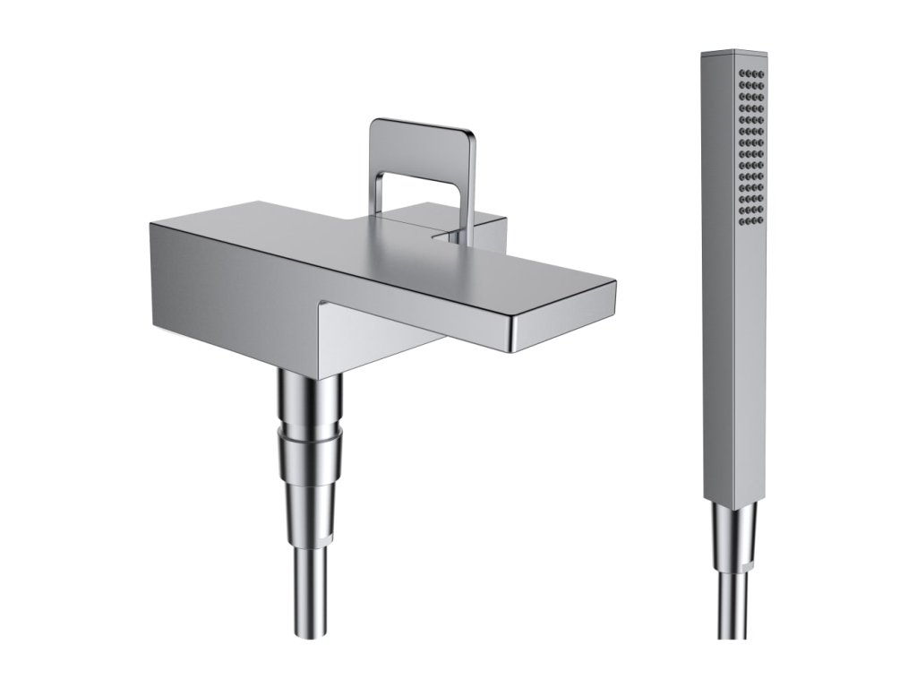 Extended Description: | Vanová páková nástěnná baterie pro podomítkové těleso Simibox 1-bodové včetně syntetické sprchové hadice 1800 mm a ruční sprchy s 1 druhem proudu, PVD inox kartáčovaná ocel |