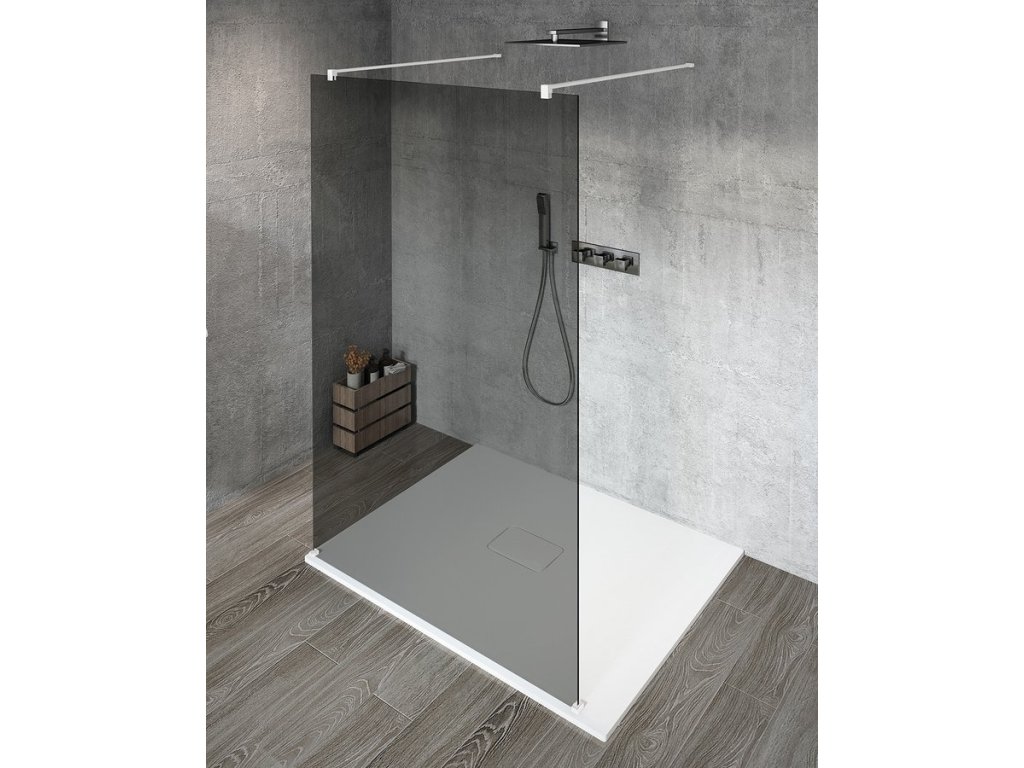 VARIO WHITE jednodílná sprchová zástěna do prostoru, kouřové sklo, 1200 mm