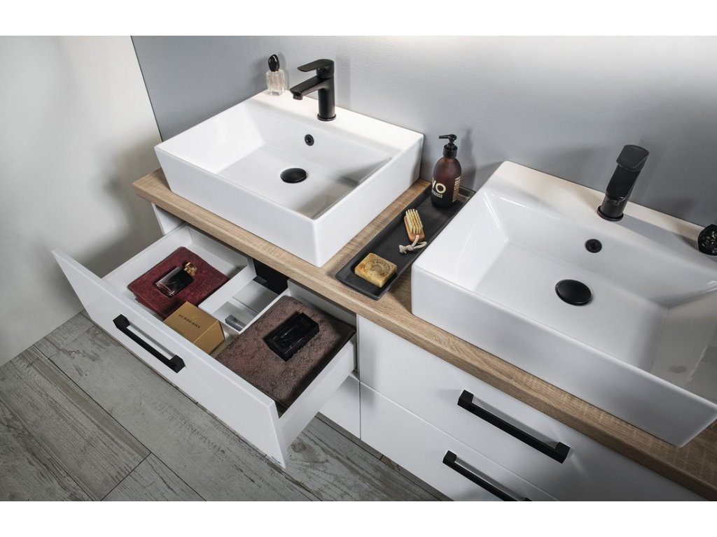 Desky pod umyvadlo jsou dodávány bez vyvrtaných otvorů pro baterii a odpad.
