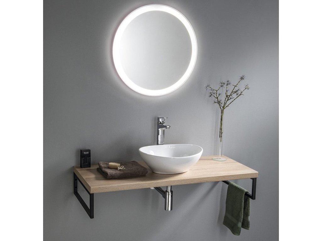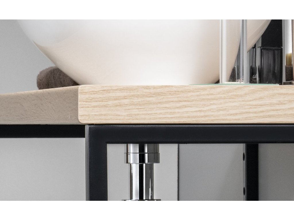 Koupelnový nábytek VEGA s deskou VEGA (HPL) v dekoru dub platin lze kombinovat s umyvadly na postavení.