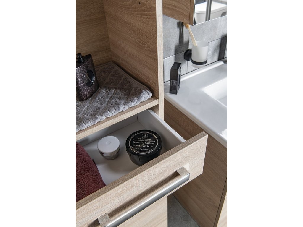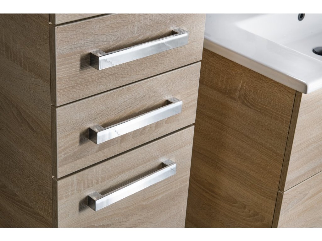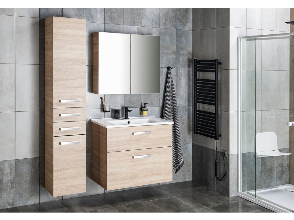 Série VEGA jsou skříňky v provedení lesklé bílé a dub platin s praktickými velkými zásuvkami. Umyvadlové skříňky lze doplnit o VEGA desku pod umyvadlo v dekoru dub platin. Koupelnový nábytek VEGA je moderní a vzhledově čistý nábytek za příznivou cenu.