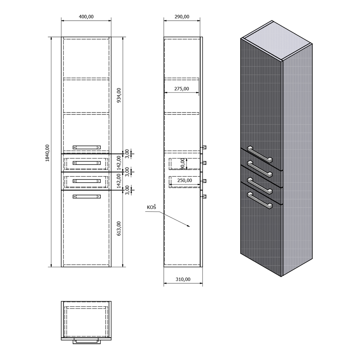 | Typ skříňky: | Zásuvky a dvířka |