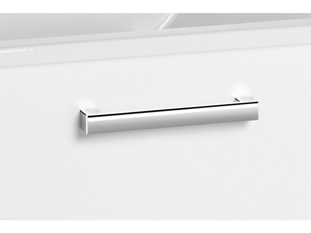 - Skříňka je dodávána s elegantními hranatými úchytkami v chromovém provedení.