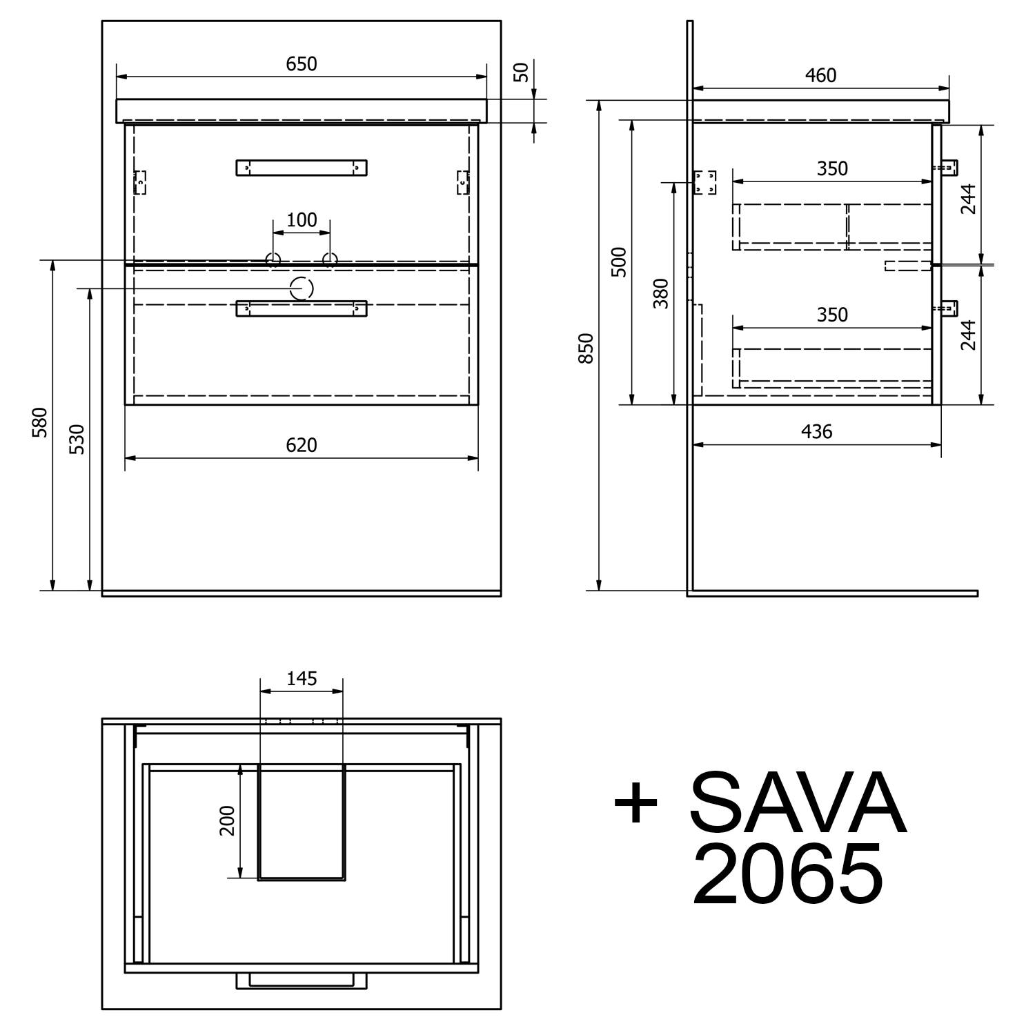 VEGA umyvadlová skříňka 62x50x43,6cm, 2x zásuvka, bílá