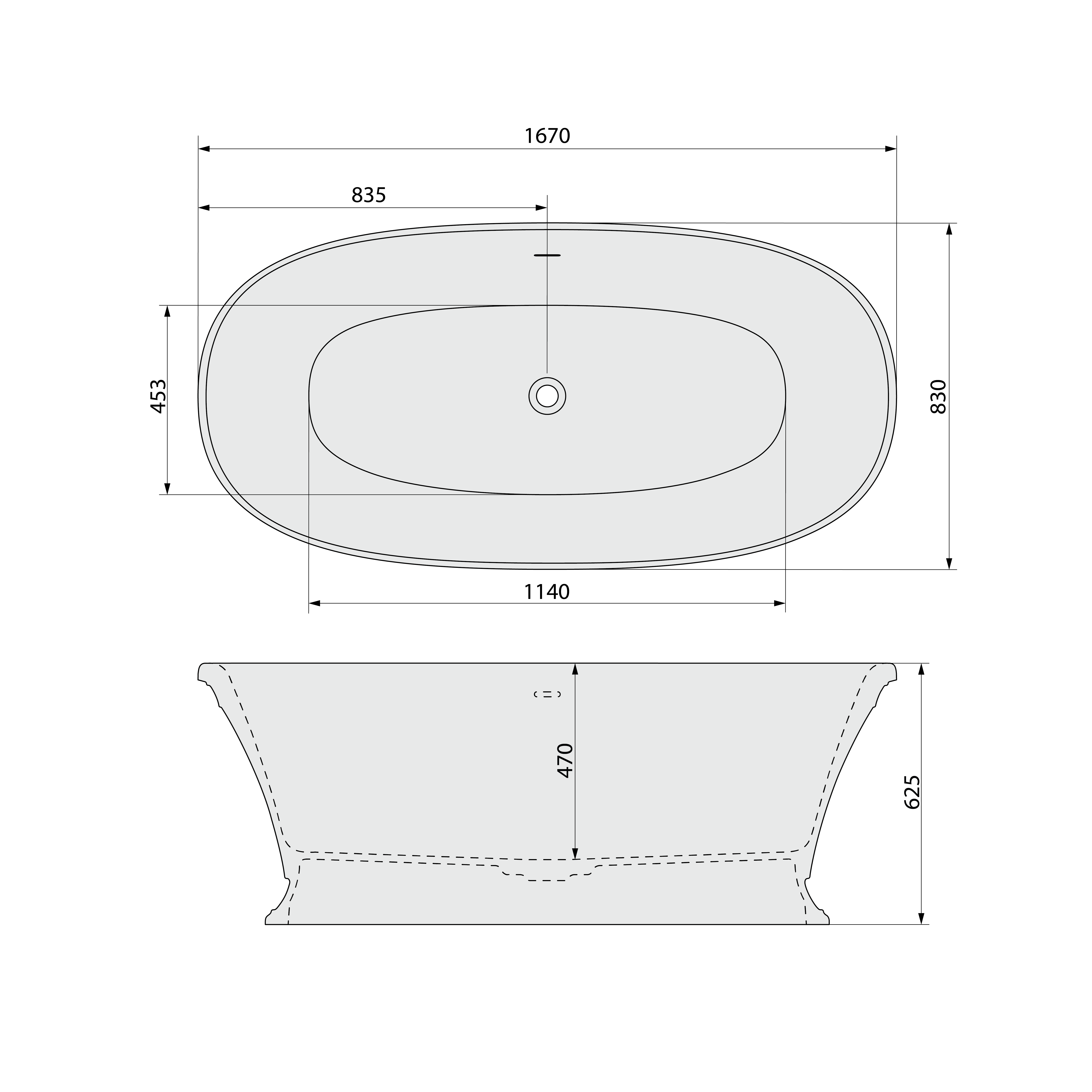 VELIA volně stojící vana litý mramor 167x83x62,5cm, bílá