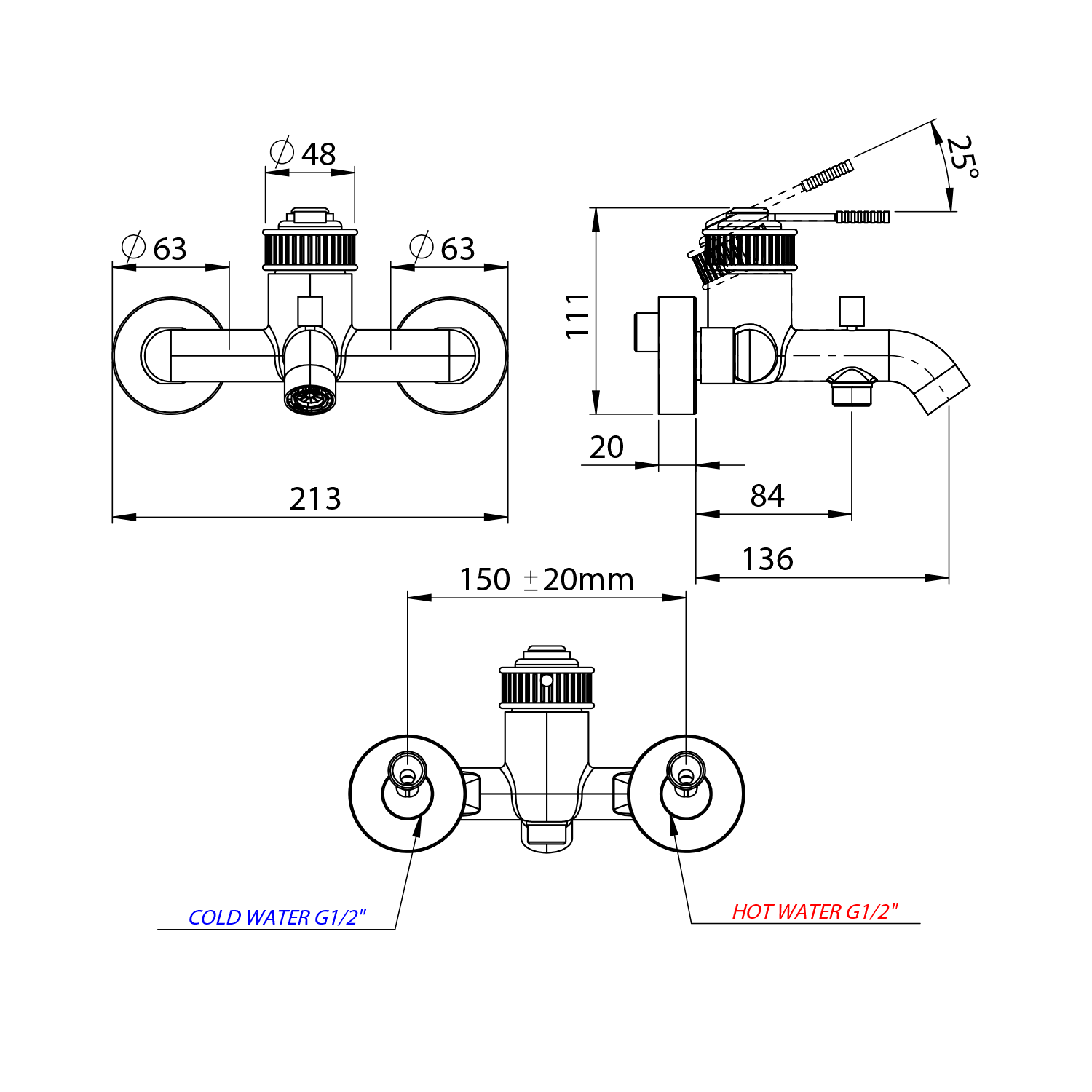 | Instalace: | Nástěnná 150 mm |