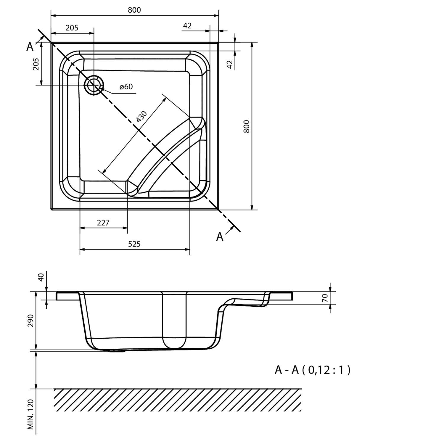 VISLA hluboká sprchová vanička, čtverec 80x80x29cm, bílá