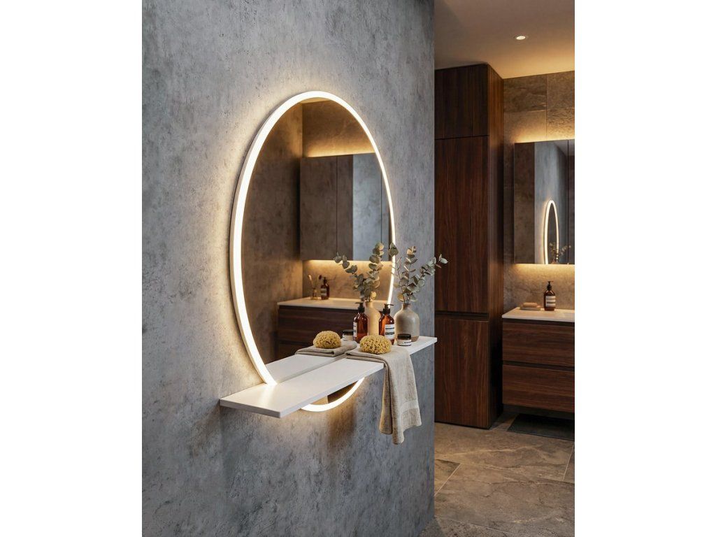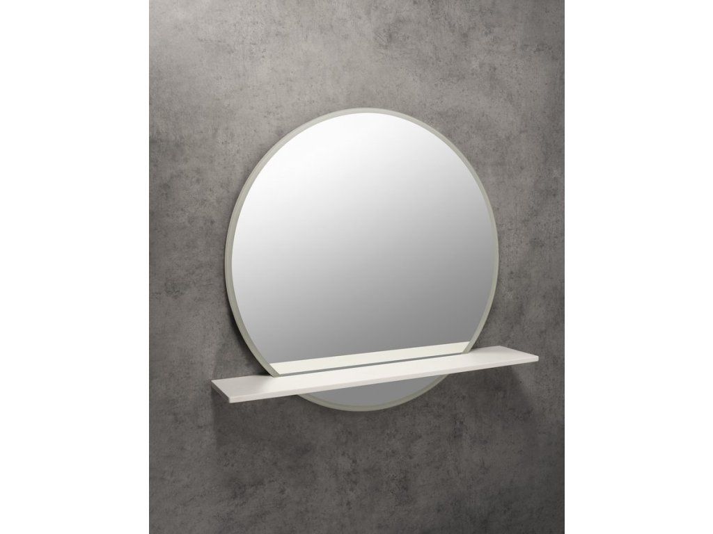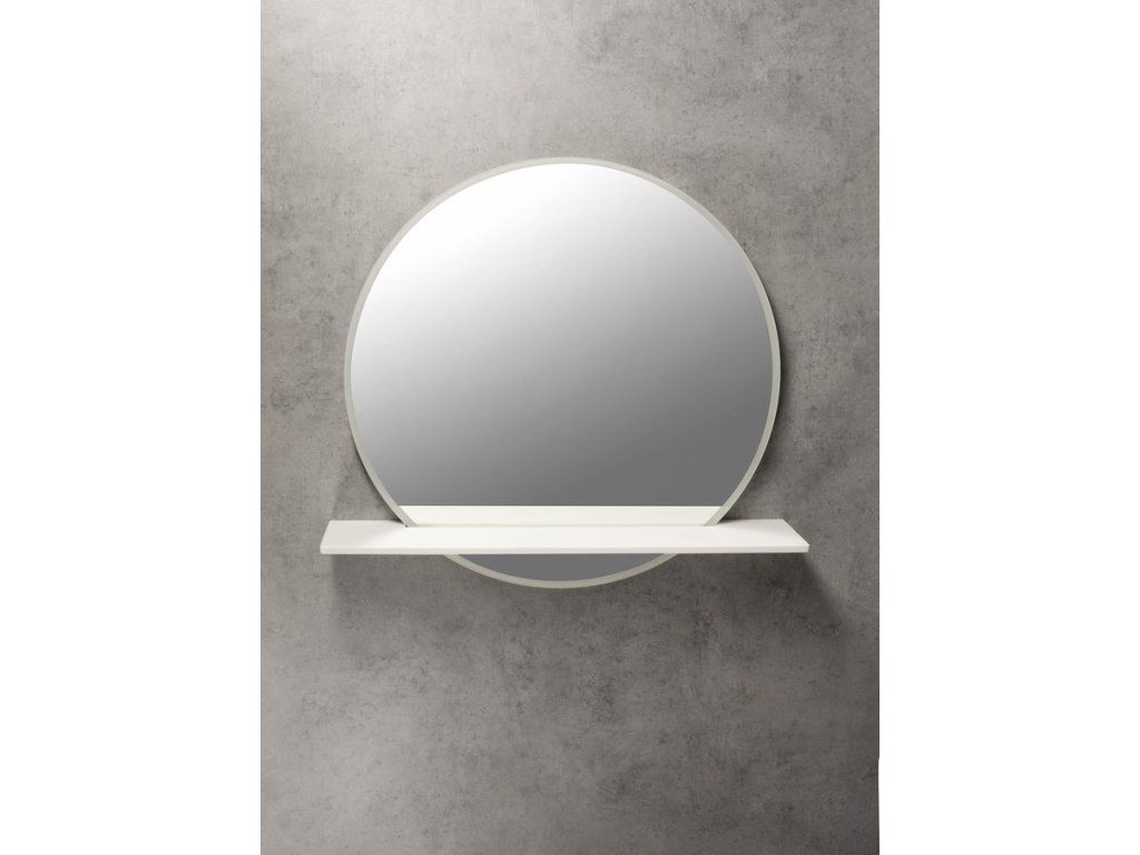 VISO kulaté zrcadlo s LED osvětlením a policí ø 70cm, bílá mat