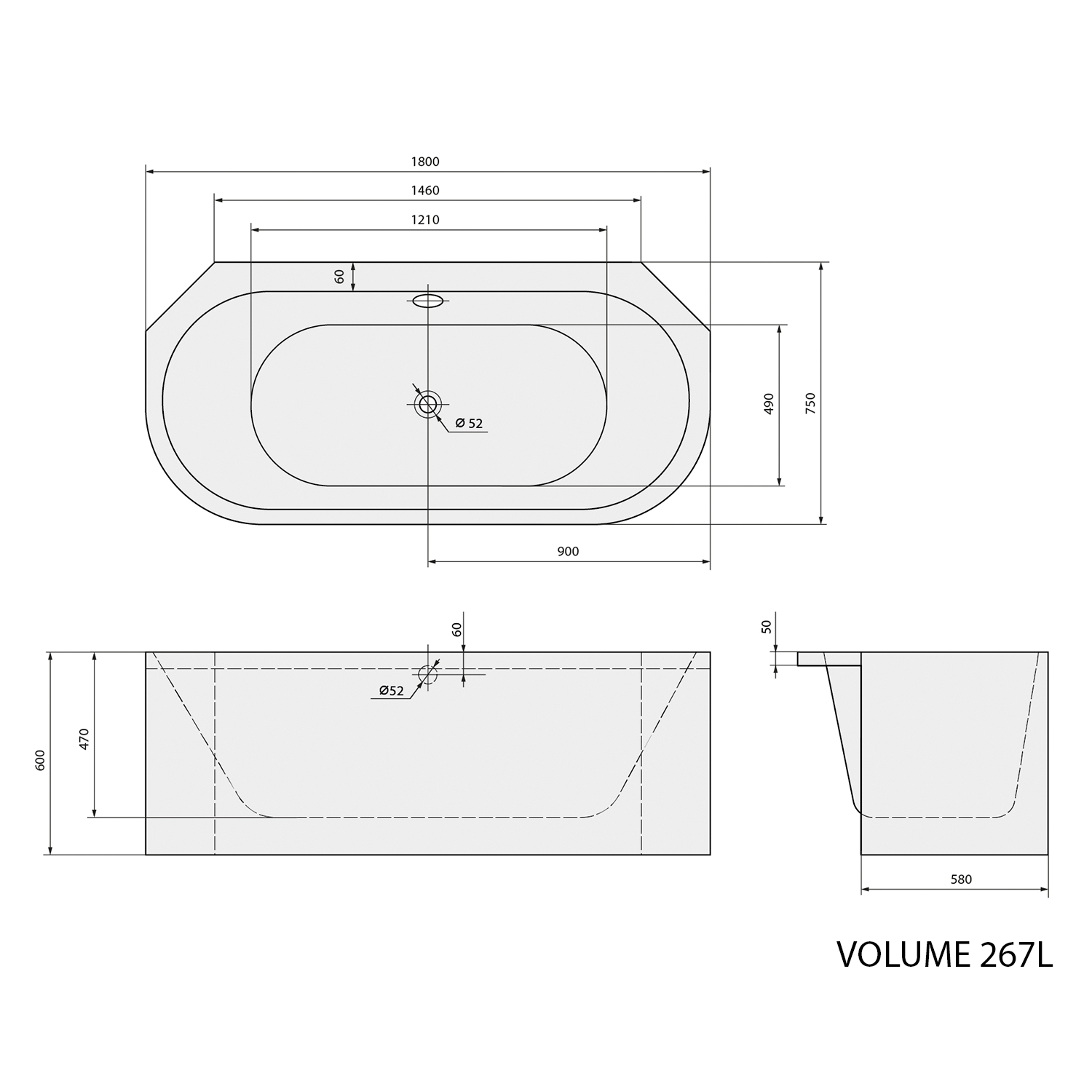 VIVA A MONOLITH rohová vana 180x75x60cm, bílá