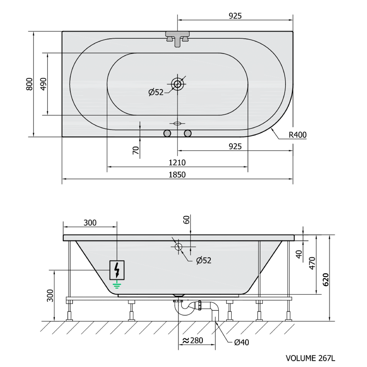 VIVA L hydromasážní vana, 185x80x47cm, Active Hydro-Air, chrom
