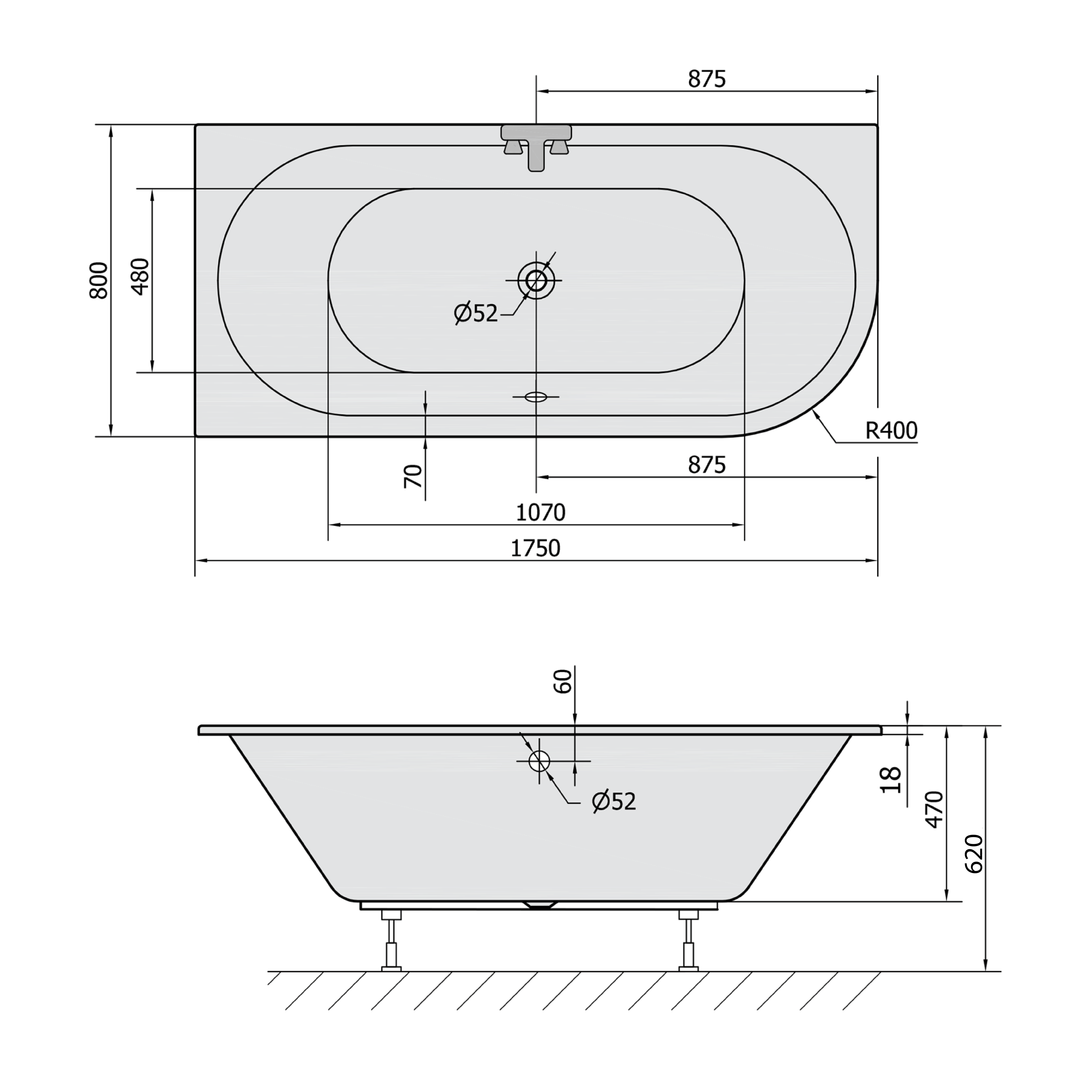 VIVA L SLIM asymetrická vana 175x80x47cm, bílá