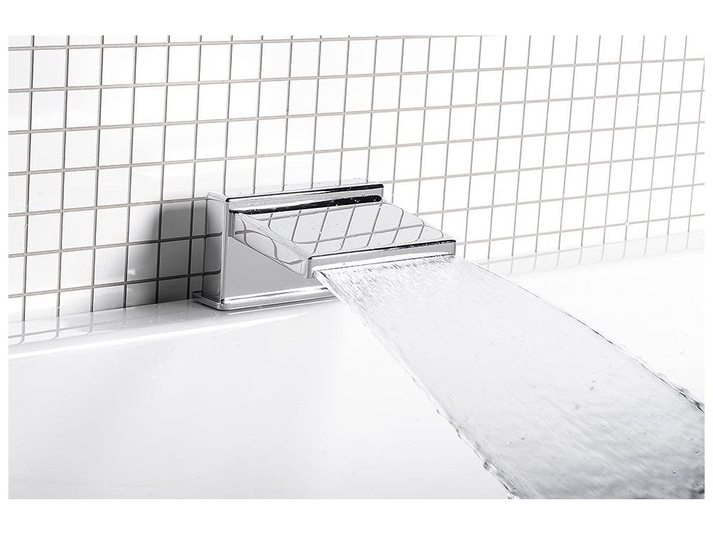 Výtoková hubice na okraj vany, šířka 145mm, kaskáda, chrom