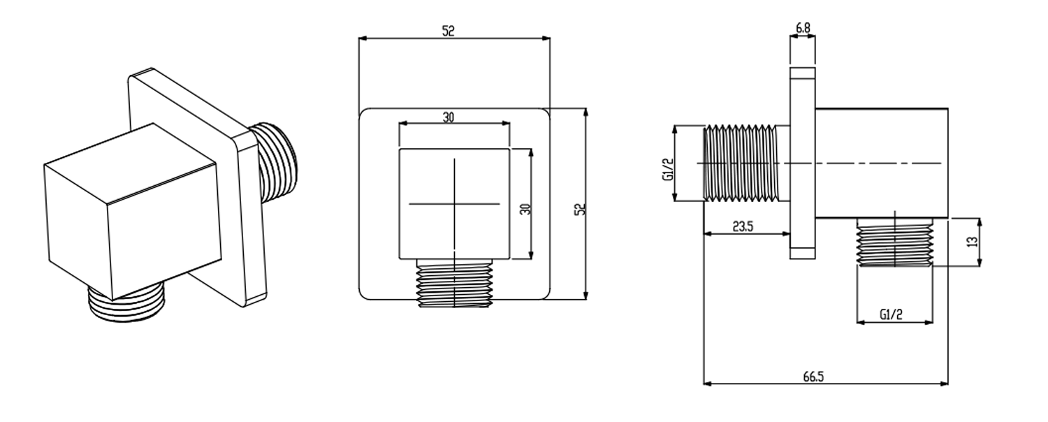 Vývod sprchy, hranatý, chrom