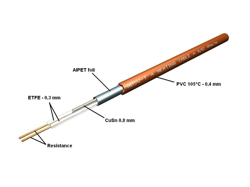 Dvoužilový topný kabel - připojovací vodič je pouze na jednom konci topného kabelu. Při instalaci není nutné vracet se s kabelem zpět k místu připojení.
